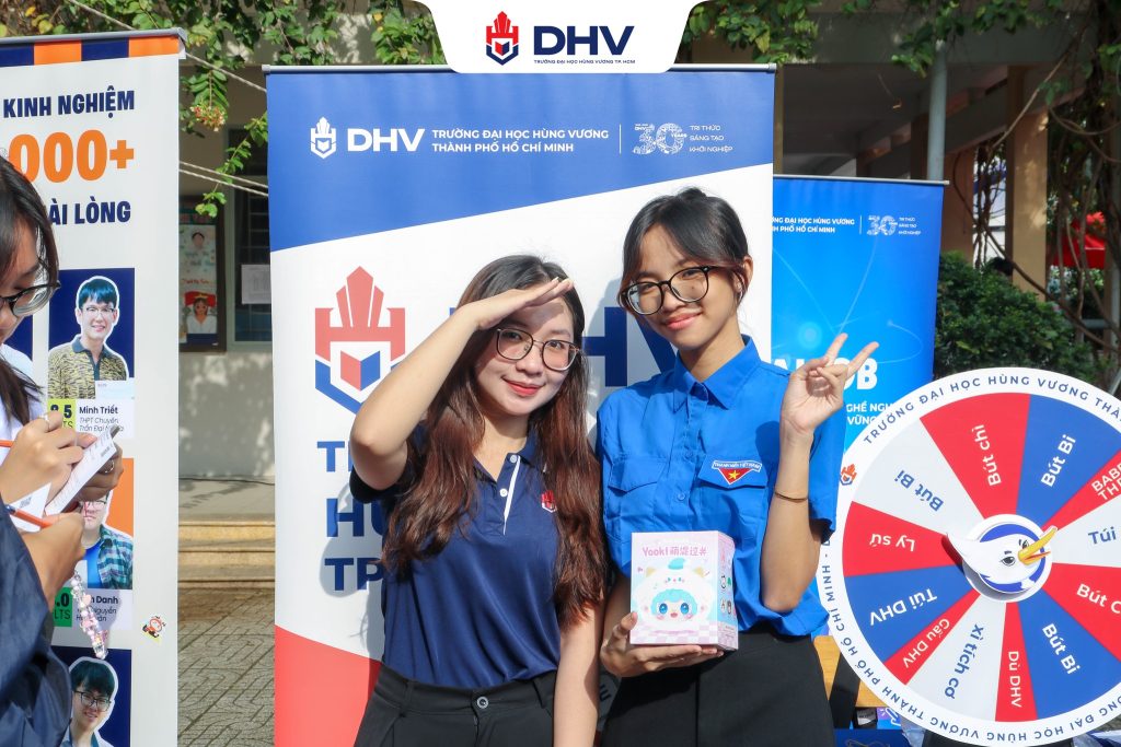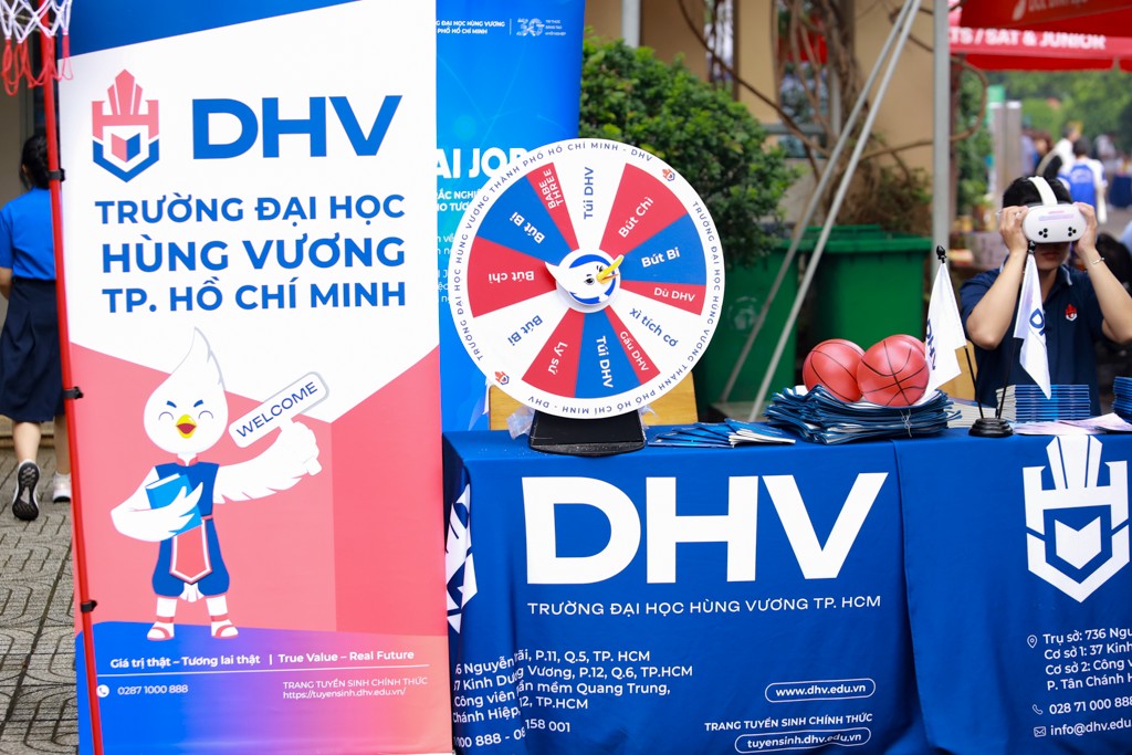 🌟 Là đơn vị đồng hành cùng chương trình, Trường Đại học Hùng Vương TP.HCM (DHV) cũng góp mặt nổi bật tại khu vực triển lãm với một gian hàng “siêu năng lượng” thu hút đông đảo học sinh ghé thăm.